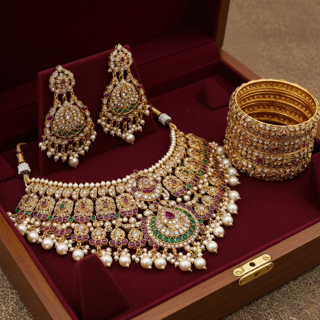 Complete Bridal Set – Necklace, Earrings & Bangles