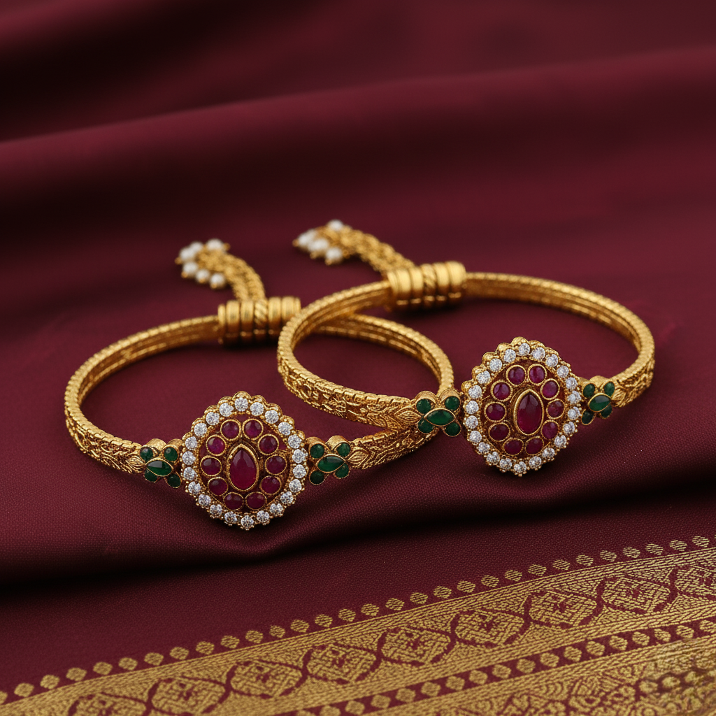 Stylish bracelet with adjustable size, studded with shining stones. Suitable for party wear.
